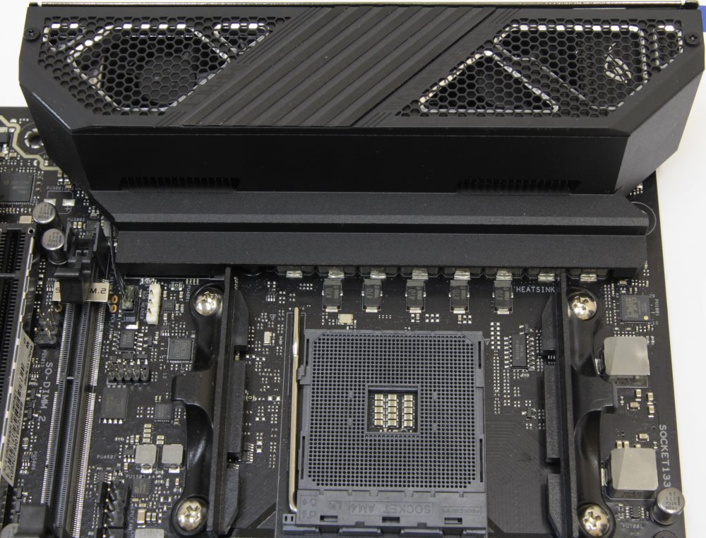 Это очень известная фирма и производитель заявляет об over 60000+ часов работы. Каждый вентилятор подключается к своему разъему на плате. Скорость их вращения заметно отличается из чего можно сделать вывод, что они работают независимо друг от друга. Сняв это чудо инженерной мысли, мы можем увидеть чипсет AMD X570.