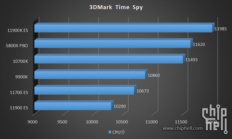 Результаты производительности представителей 11-го поколения в CPU-Z и Cinebench уже появлялись в сети, но один из пользователей китайского форума ChipHell испытал образцы в ряде сцен 3DMark, добавив к сравнению Coffee Lake Refresh, Comet Lake и AMD Zen3.