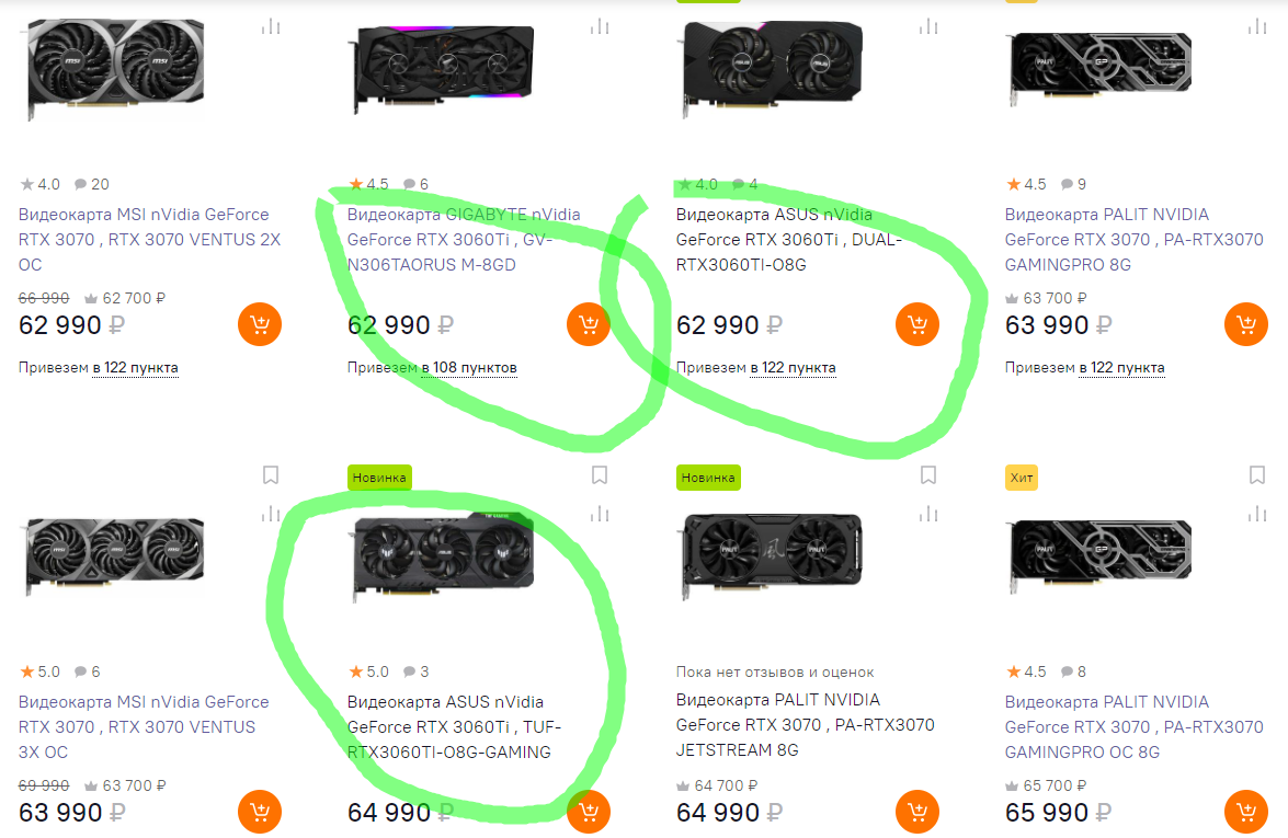 Кстати, в продаже есть модели GeForce RTX 3060 Ti дороже чем GeForce RTX 3070, при рекомендованной разнице в цене между ними в 100 долларов.