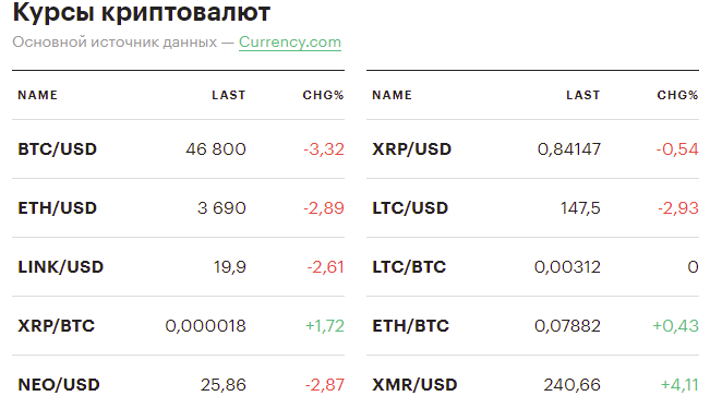 Ну а мы взглянем на курс Биткоина на утро 1 января. Как видите, цифровое золото просело ниже 47 тысяч долларов и продолжает терять в цене. Если вы были в числе оптимистов, ожидающих возвращения криптовалют к высоким отметкам, то пока вам придётся повременить с ожиданиями.