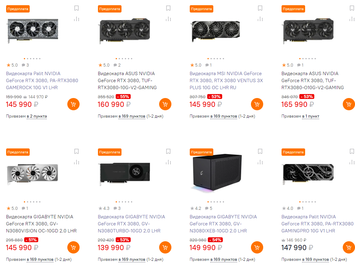 Согласно официальной версии, некто принёс на ремонт майнинговую ферму, состоящую из 6 видеокарт: 2хGeForce RTX 3070 Ti и 4хGeForce RTX 3080. Блогер посчитал, что цена всех видеокарт примерно равна 800 000 рублей, но это явно не соответствует реальности. Давайте считать: самая простенькая GeForce RTX 3080 стоит 145 000 рублей. Купить GeForce RTX 3070 Ti дешевле 125 тысяч просто невозможно. Итого: 145 000х4=580 000; 125 000х2=250 000. В результате по самым скромным подсчётам только видеокарты стоят 830 000 рублей, а есть ещё блоки питания и другие детали. Мало того, судя по видео, видеокарты стоят там не самые простые, поэтому реальная цена фермы на сегодня равна 1 000 000 рублей.