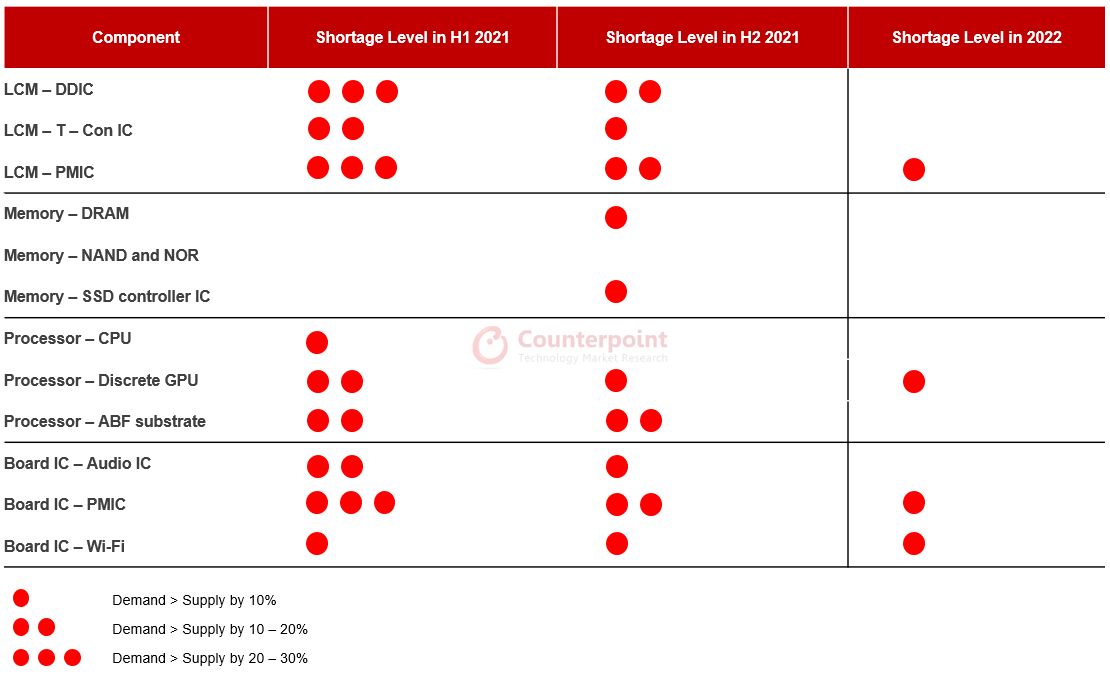 Очередная статистика от исследовательской фирмы Counterpoint показала снижение поставок персональных компьютеров в первом квартале по сравнению с показателем годичной давности на 4,3% до 78,7 млн экземпляров. Есть прогноз, согласно которому во втором полугодии дефицит компонентов станет менее острым и поставки могут вырасти.