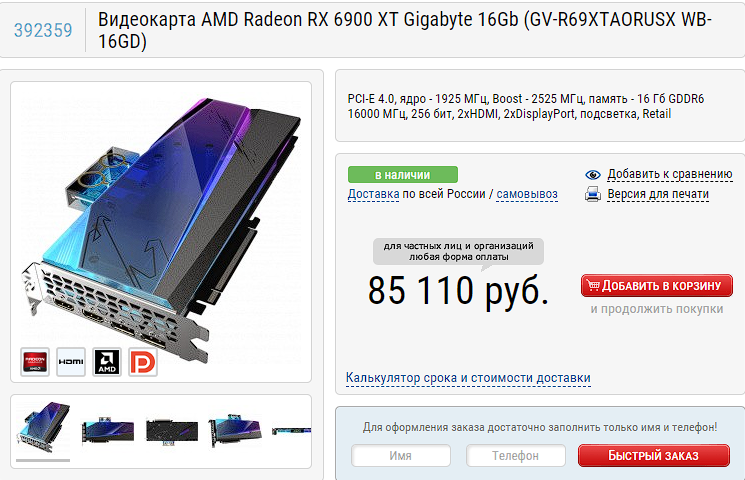 Если вы устали терпеть ограничения, то самое время купить флагман. Radeon RX 6900 XT имеет все шансы стать основной для высокопроизводительного игрового компьютера и стоит ниже рекомендаций для российской розницы. 16 Гб достаточно даже для разрешения 4К, а о существовании настроек графики можно позабыть на несколько лет. Все игры будут летать на максималках, а потенциала видеокарты хватит на многие годы. Особый интерес вызывает модель производства Gigabyte, получившая заводскую систему жидкостного охлаждения. Если вы всегда хотели опробовать свои навыки в разгоне, то лучшего шанса может и не быть.