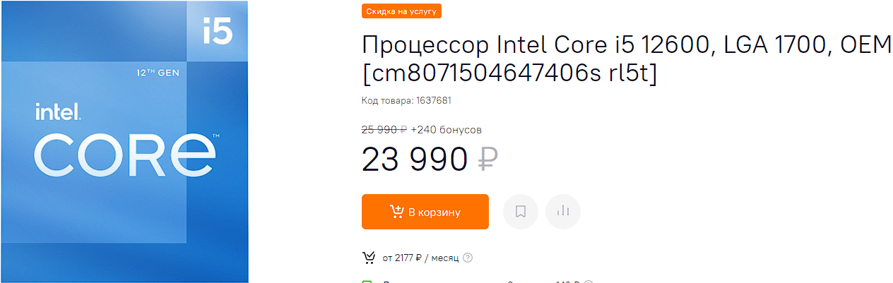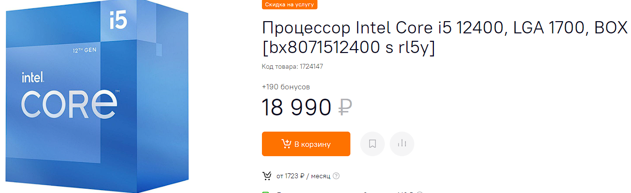 Поскольку среди наших читателей достаточно любителей продукции Intel, то мы считаем своим долгом порекомендовать им 6-ядерный Core i5-12400. Особенно интересен данный камень будет в играх, где может показать высокую производительность и легко потянет дорогостоящую видеокарту. Поскольку Core i5-12400 не предполагает разгон, то можно ограничиться недорогой материнской платой с поддержкой основных интерфейсов, ну а сама сборка будет совсем немного дороже аналога на Ryzen 5 5600X.