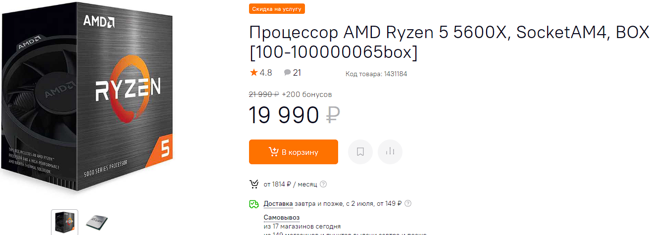 Прекрасно себя зарекомендовал Ryzen 5 5600X. Если речь идёт о недорогой сборке, владелец которой не будет чувствовать дискомфорт и ограничения, то лучше ничего и не придумаешь. Процессор пользуется высоким спросом ещё и потому, что подходит для установки в старые системы на чипсете АМ4. Это очень выгодное предложение, способное усилить мощь старого компьютер, который уже давно не тянул игры.