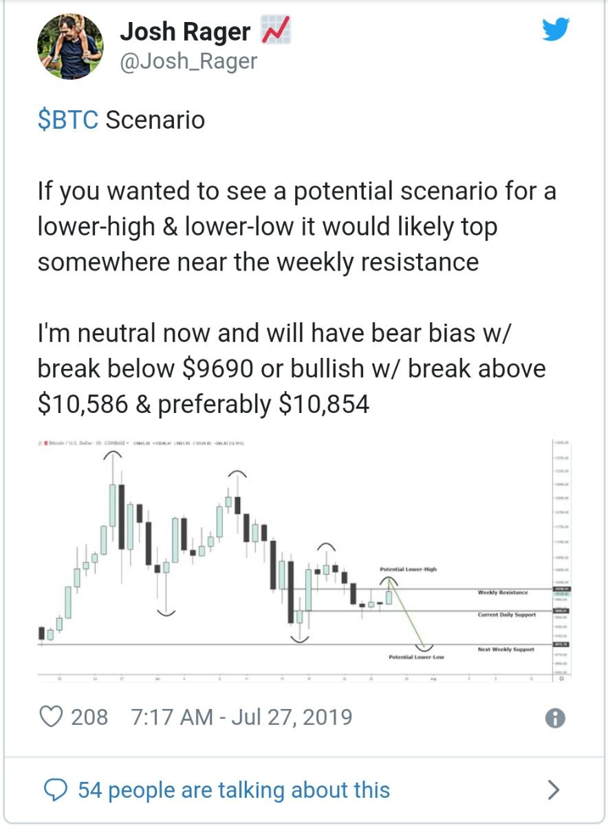 Что бы ни случилось, Рейджер хорошо дал понять, что не верит в огромный спад цены, а потому, отметка ниже $10 000 уже будет подарком.