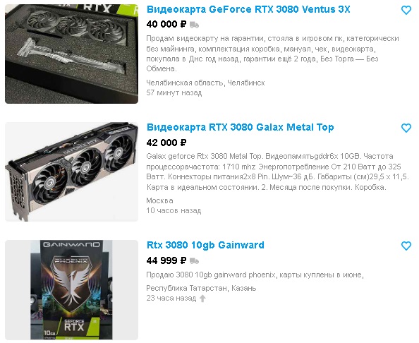 Вот например младшие флагманы от Nvidia в лице GeForce RTX 3080, правда все лишь с 10 гигабайтами видеопамяти, тем не менее, данная модель может обеспечить абсолютно все прихоти любого геймера, максимальные настройки графики, высокое разрешение изображения, множество мониторов одновременно, всё это уже доступно от 40,000 рублей. Помнится в моменте эти же модели были доступны лишь от 150-200 тысяч рублей.