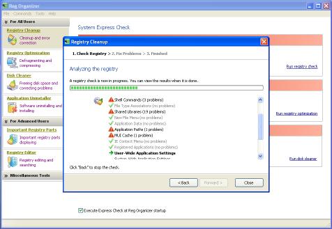 - уборщик реестра, способный обнаруживать многие типы ошибок реестра, включая недействительные ссылки на файлы, директории и DLL, некорректные данные установки, устаревшие или некорректные файловые расширения; многие из этих проблем могут быть исправлены автоматически