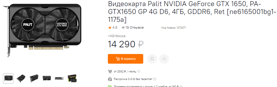 GeForce GTX 1650 не предполагает дополнительных требований к железу, а значит подходит абсолютно всем. На самом деле видеокарта NVIDIA уступает Radeon RX 6500 XT, поэтому стоит как следует задуматься. Вы экономите чуть больше полутора тысяч, но теряете до 15% скорости. Или не теряете, вы ведь помните о том, что видеокарта AMD очень сильно зависит от наличия современного интерфейса. Несмотря на всё вышесказанное, GeForce GTX 1650 берут намного охотнее, ведь она была освящена святым ликом Дженсена Хуанга.