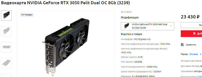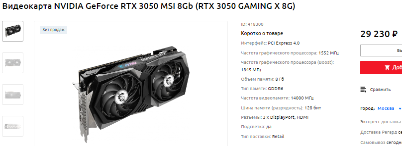Начнём с GeForce RTX 3050 производства MSI. Мы не станем спорить, что это прекрасная модель, которая не только справляется с задачей отвода тепла от графического чипа, но и позволяет поупражняться в разгоне. Кроме того, если нагрузка минимальна, а температура не превысит установленной, видеокарта и вовсе будет вести себя тихо, позволяя вентиляторам не вращаться. Вот только стоит такая видеокарта 29 230 рублей. Если открыть глаза, то за 23 430 рублей можно купить GeForce RTX 3050 от Palit. Только вдумайтесь, вы экономите 6000 рублей, а ведь речь идёт о среднем ценовом сегменте, где каждая тысяча на счету. Да, ничего разогнать не выйдет, но это и не нужно, ведь разгон видеокарт эффективен исключительно с использованием жидкостного охлаждения и даёт видимый эффект на дорогих графических чипах. По сути, за 29 тысяч можно купить намного более мощную видеокарту, но российские геймеры предпочитают совершать ошибки.
