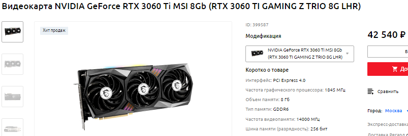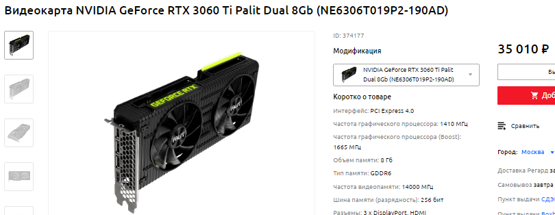Похоже, MSI намерена стать лидером нашего перечня неправильных видеокарт. Подумайте сами, за 42 540 рублей вы можете купить GeForce RTX 3060 Ti от этой компании, тогда как та же Palit предлагает аналогичный графический чип за 35 тысяч. Не знаем как вам, а нам кажется такая переплата неправильной. MSI удалось ощутимо поднять тактовую частоту графического чипа за счёт наличия более внушительной системы охлаждения, но эксперты часто проводят тесты, убеждаясь в том, что такой шаг даёт не больше 5% роста быстродействия. По сути, если у вас не самый новый и быстрый процессор, то разглядеть разницу будет почти невозможно, поэтому стоит как следует подумать, прежде чем переплачивать за бренд.