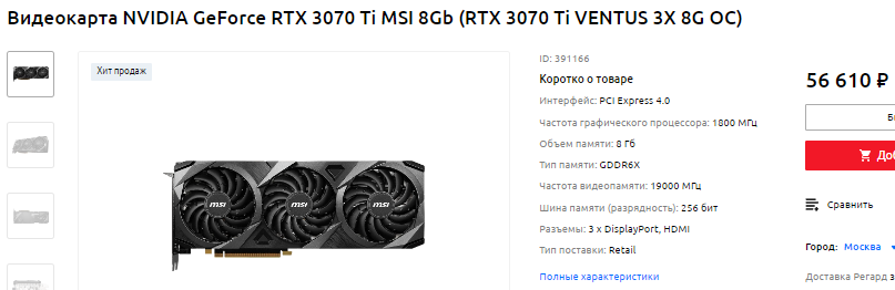 За 49 210 рублей можно отхватить GeForce RTX 3070 от той же MSI. Неплохое решение, ведь видеокарта обладает всеми преимуществам, описанными выше, но уже на более высоком уровне. Здесь доступна внушительная производительность, а потенциальный покупатель вправе рассчитывать на доступ к разрешению 2К. Вот только на пару тысяч дешевле есть GeForce RTX 3070 от Palit. Удивительно, но обе имеют идентичные тактовые частоты, а системы охлаждения одинаковы хороши. Возможно, что дьявол кроется в дателях, а переплата не такая уж и большая. Стоит учитывать, что GeForce RTX 3070 от Palit уже давно ушла ниже 50 тысяч, тогда как аналогичный графический чип от MSI дешевеет неохотно.