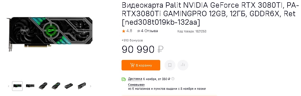 - Gigabyte GeForce RTX 3080 GAMING OC – 69 тыс. рублей