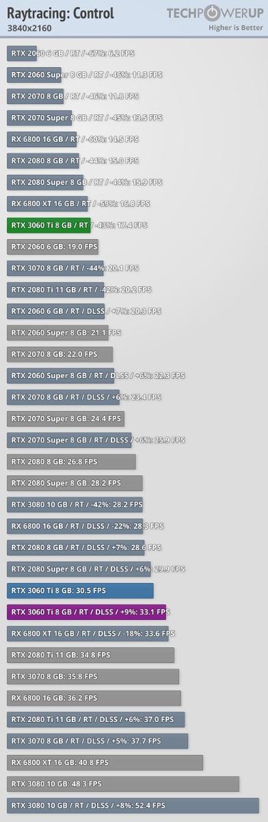 Буквально пару часов назад запрет на публикацию обзоров NVIDIA GeForce RTX 3060 Ti пал, в результате чего сеть наводнило великое множество тестов от разного рода специалистов и ряда именитых (и не очень) сайтов, в числе которых оказался и ресурс TechPowerUp, поделившийся с широкой общественностью результатами своих исследований не только в разрезе общей производительности новинки, но и при активации технологии трассировки лучей и DLSS.