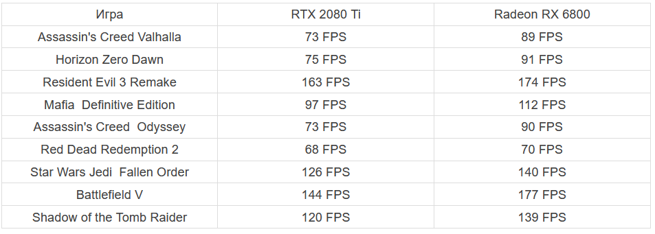 Nvidia позиционирует RTX 3070 как аналог флагмана прошлого поколения с рекомендованной ценой 500$. Тесты показали правдивость слов маркетологов. Но сможет ли одолеть RTX 2080 Ti аналог 3070 от AMD? Авторы youtube-канала Benchmark решили ответить на этот вопрос, столкнув лбами Radeon RX 6800 и RTX 2080 Ti в 9 актуальных ААА-блокбастерах в разрешении 1440р.