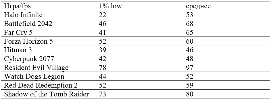 Как видите, даже в таких новых проектах как Hitman 3 и Cyberpunk 2077 fps держится выше 40. Очевидно, что небольшие манипуляции позволят поднять показатель до 60 кадров в секунду, сделав игру комфортной для большинства геймеров. Во всех остальных проектах можно увидеть стабильно высокие результаты, что говорит в пользу того, что Radeon RX 580 отлично справляется с современными играми.