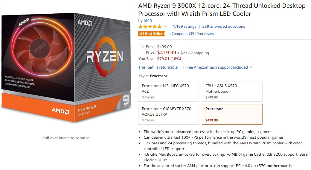 AMD продолжает наступать на позиции своего основного оппонента на процессорном рынке в лице Intel, планомерно снижая стоимость своих продуктов: очередное падение цены на одну из настольных моделей Ryzen третьего поколения было замечено в заморском онлайн-магазине Amazon.