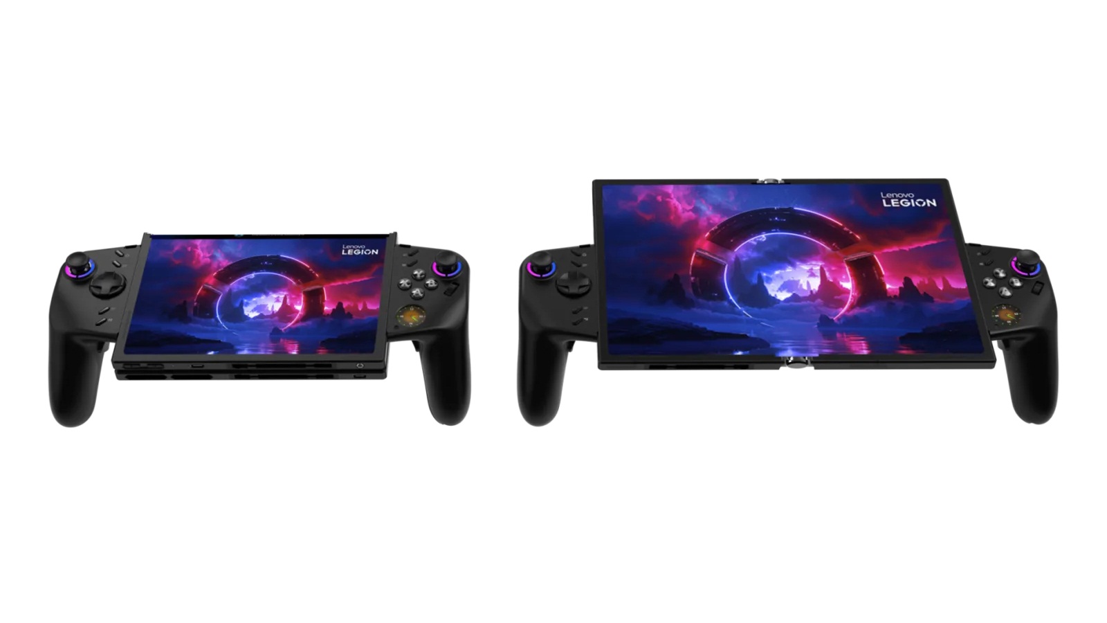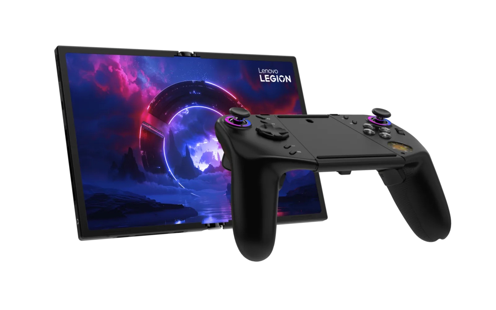 Складное игровое устройство представляет собой гибрид консоли и компьютера, который трансформируется в портативную (7,7 дюймов) и расширенную (11,6 дюймов) модели. Контроллеры, похожие на Joy‑Con Nintendo, можно прикреплять по бокам, снимать и использовать отдельно, комбинировать в полноценный геймпад или даже применять правый контроллер как вертикальную мышь в настольном режиме