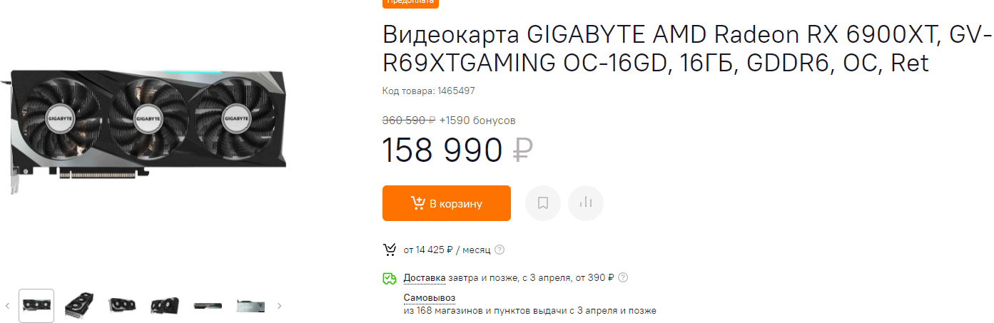 Если уж гнаться за скидками, то нужно брать Radeon RX 6900 XT. За каких-то 159 тысяч рублей вы получаете флагман AMD. Это видеокарта для тех, кто хочет именно флагман, но не может себе позволить потратить 270 тысяч на GeForce RTX 3090. В реальных играх разница между графическими чипами не превышает 7%, а в некоторых видеокарты и вовсе равны. При этом только за две недели Radeon RX 6900 XT подешевела больше чем в 2 раза (на 60%).
