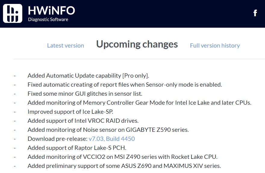 Известная программа для мониторинга и диагностики HWiNFO в ближайшей бета-версии получит предварительную поддержку еще не выпущенных материнских плат ASUS Z690, отмечает VideoCardz. Кроме этого, в списке присутствуют процессоры Raptor Lake-S, которые должны быть преемниками Alder Lake-S 12-го поколения.