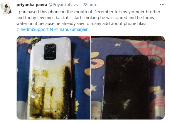 Несмотря на это телефоны загораются и даже очень хорошо. Пожалуй, в качестве самого известного примера можно привести всю серию Galaxy Note 7, когда сотни тысяч аппаратов вернулись на заводы Samsung, а производитель потратил 5 миллиардов на покрытие сопутствующих расходов. Не так давно мы рассказывали о взорвавшемся Galaxy J5 Prime, но там ситуация была не совсем ясна. Судя по всему, виноват был сам пользователь, который использовал поддельную батарейку и дешёвый зарядник. Ну а пару дней назад стало известно, что один из телефонов Xiaomi Redmi Note 9 Pro неожиданно загорелся.