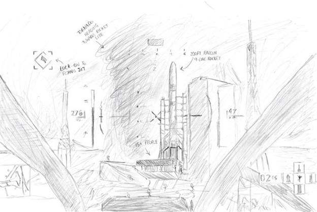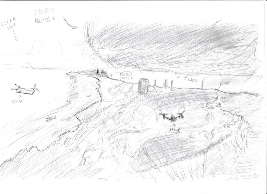 На снимках можно обнаружить полуостров во время надвигающегося шторма, винтокрылые транспортные средства, приближающиеся к ракетной пусковой установке, а также непосредственно вид из кабины пилота данного винтокрыла в непосредственной близости от ракеты.