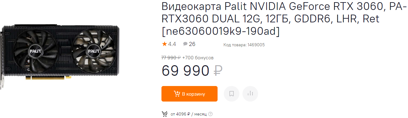 Грубо говоря чуть более недели назад была возможность приобрести модель Видеокарта Palit GeForce RTX 3060 DUAL OC за 66 999 отечественных рублей, а уже сегодня из всех моделей 3060 самой доступной является EVGA GeForce RTX 3060 GAMING XC уже за 95 499 тех же самых российских.