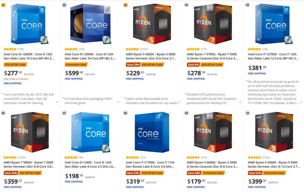 Самым настоящим бестселлером остаётся Ryzen 5 3600. Он годится как для новой сборки, так и для небольшого апргрейда. Сегодня у AMD новые герои, но если вы не хотите переплачивать кучу денег за процессор, то старичок Ryzen 5 3600 ещё много лет будет вашим лучшим другом. Он нетребовательный и легко встанет на любую материнскую плату начиная с А320. Учтите, что процессор лишён интегрированного графического чипа.