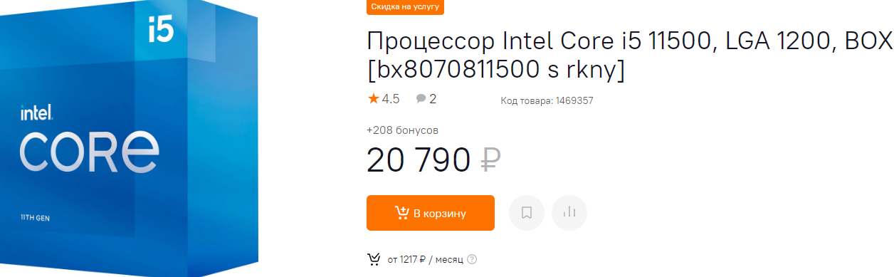 Раз уж мы заговорили об экономии, то можно обратить внимание на Core i5-11400F. Он совсем немного медленнее Core i5-11500, но лишён встроенного графического чипа. Получается, что, выигрывая 3 тысяч на процессоре, вы теряете возможность играть без дискретной видеокарты. Ну и не забывайте о разнице в тактовых частотах. Более старший процессор всё же в играх будет интереснее.