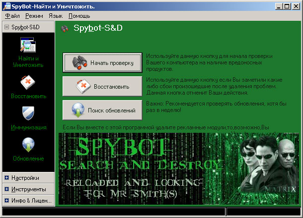На фоне бесконечной войны авторов вирусов/шпионов/троянов и прочей гадости с разработчиками противостоящего ПО наблюдается постоянное совершенствование и тех, и других средств. Без постоянного обновления и развития защитные механизмы не смогут адекватно противостоять угрозам, а в последнее время проблема безопасности становится всё более актуальной и насущной. В качестве одного из отличных средств для борьбы с самыми разнообразными шпионскими и троянскими модулями можно отнести назвать программу Spybot - Search & Destroy, неоднократно занимавшую первое место в различных независимых тестах продуктов такого рода.