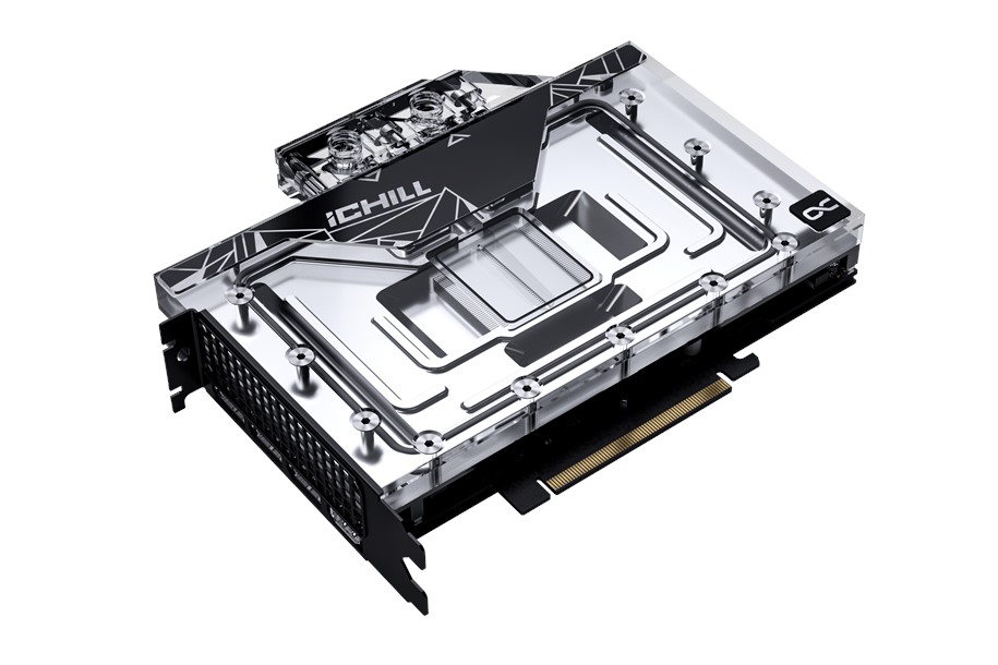 Исходя из представленных данных, топовая игровая видеокарта Inno3D GeForce RTX 4090 iCHILL Black, «сердцем» которой стал GPU, оснащённый 16384 ядрами CUDA и способный функционировать на частотах 2230/2580 МГц в номинальном/boost-режиме, наделённая кожухом, выполненным в тёмных тонах и дополненным вырезом с прозрачной крышкой и RGB-подсветкой, усиленной задней панелью и снабжённая водоблоком полного покрытия, оценена в €2300 (около 132 000 рублей).