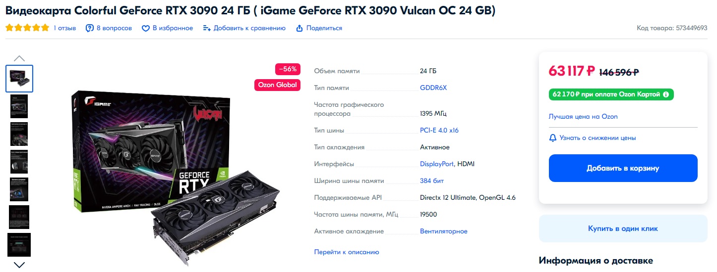 Для истинных "пекабояр" компания Colorful подготовила ультимативный вариант — RTX 3090 Vulcan. Знаменитый и многими горячо любимый Vulcan практически не уступает модели FTW3 от EVGA, а стоит гораздо дешевле, всего 63117 рублей. 4K-гейминг на "ультра" в последние ААА-проекты теперь могут позволить себе не только миллионеры.