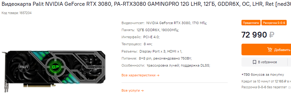 Топовое графическое решение в лице GeForce RTX 3070 также сильно подешевело. Стоимость видеокарты, относительно установленной в пик бума майнинга, "похудела" на сто тысяч рублей. В этот промежуток сейчас можно уложить несколько неплохих сборок ПК.