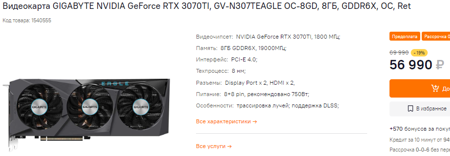 Почти на 20% подешевела видеокарта GeForce RTX 3070 Ti производства GIGABYTE. Многие энтузиасты ругают этот графический чип NVIDIA, называя несколько его ключевых недостатков. Во-первых, GeForce RTX 3070 Ti имеет всего 8 Гб видеопамяти, что является довольно спорным решением. Во-вторых, в требовательных играх вам точно не хватит запаса производительности для разрешения 4К на максимальных настройках графики. Нам кажется, что очень многое зависит от вашего умения искать компромисс. Если не зацикливаться на самых высоких графических настройках, то GeForce RTX 3070 Ti покажет себя с лучшей стороны.