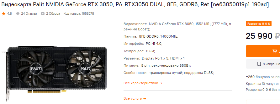 Ну и завершить хотим на GeForce RTX 3050. Эту видеокарту NVIDIA сложно назвать оптимальной, но это действительно самый дешёвый вариант текущего поколения. Учтите, что даже после выхода новинок GeForce RTX 4000-й серии мы не увидим ничего подобного по цене ещё как минимум полгода или год. Это значит, что GeForce RTX 3050 так и останется бестселлером. Если вы отдаёте предпочтение продукции NVIDIA, при это не хотите платить больше, то выбор очевиден.