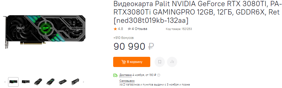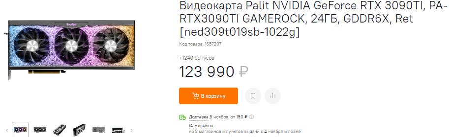 Не нравится нам и цена GeForce RTX 3080 Ti. Даже в сентябре были предложения дешевле 90 тысяч, а сегодня стыдно просить дороже 60 тысяч рублей за видеокарту, которая на 70% медленнее флагмана текущего поколения. Покупать эту видеокарту не советуем, поскольку она стоит намного дороже, чем должна. Мало того, здесь всего 12 Гб видеопамяти. Получается, что вы платите целую гору денег, а за 90 тысяч получаете пшик. Спасибо, но мы проходим мимо.