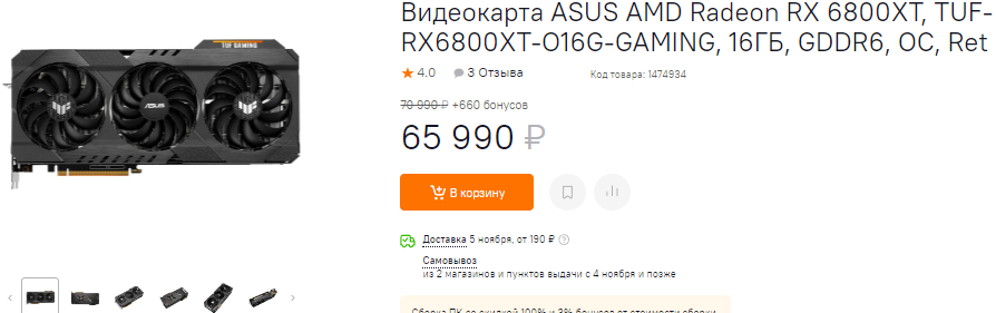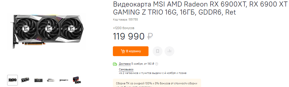 Просто какая-то дикая цена установлена на Radeon RX 6900 XT. Может дело в том, что это MSI, а может видеокарты были завезены давно и лежат с тех пор, когда за 1 доллар давали 80 рублей. Какова бы ни была причина такого безобразия, мы призываем вас обходить данное предложение стороной. Даже несколько месяцев назад в продаже были отдельные модели Radeon RX 6900 XT по 90 тысяч за штучку. Сегодня красная цена такой видеокарты не превышает 80 тысяч, но это с учётом нашей щедрости, ведь на самом деле намного ниже.