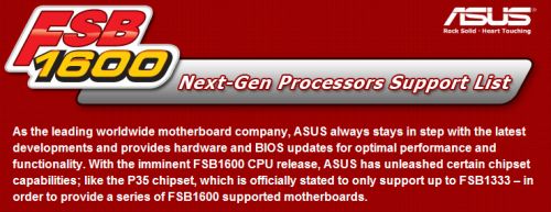 Словно напоминая о своих традициях "предлагать больше, чем разрешает Intel", компания Asus на этой неделе опубликовала список материнских плат, готовых к поддержке 1600 МГц шины посредством простого обновления BIOS. Больше всего повезло чипсету Intel P35, на базе которого Asus построила немало достойных материнских плат.