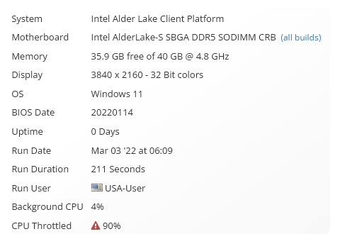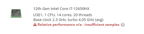 Ещё до презентации мобильных процессоров Intel Alder Lake в сети обсуждалась возможность адаптации настольной серии S для высокопроизводительных ноутбуков. На данный момент компания представила основные модели и пока самой производительной для ноутбуков является серия P (индекс у моделей H) с базовым тепловым пакетом до 45 Вт. Но, вероятно, более производительные варианты действительно запланированы — недавно в сети заметили инженерную платформу с 16-ядерным мобильным процессором HX, а сегодня в базе данных UserBenchmark свой след оставил Intel Core i7-12650HX.