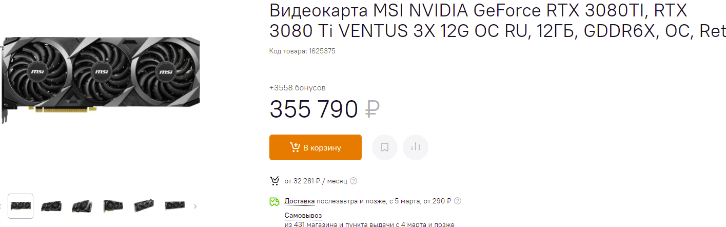 Цены на видеокарты и без того были большими, но после целого ряда спекуляций российских магазинов взмыли в небо. Что странно, пока ни AMD, ни NVIDIA не планируют останавливать поставки, но из-за ажиотажного спроса все торговые точки решили как следует подзаработать. Как вам GeForce RTX 3090 за 538 790 рублей? Судя по всему, кто-то решил ещё подкупить Биткоинов, продавая видеокарту в 4 раза дороже, чем она должна стоить на самом деле.