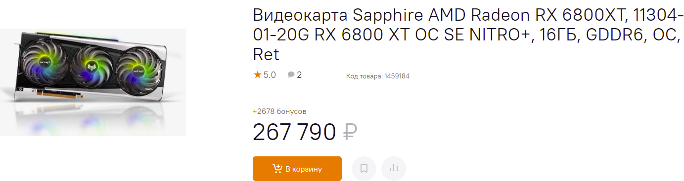 В этом случае остаётся только одно: GeForce RTX 3080 за 321 790 рублей. А помните, как неделю назад за неё просили 138 000 рублей? Сегодня нас интересует только один вопрос: когда цены вернутся в норму? Пожалуй, наиболее бюджетной флагманской видеокартой является Radeon RX 6800 XT. За каких-то 267 790 рублей можно получить производительность более дорогой GeForce RTX 3080. Кстати, вы заметили, что у ребят из Ситилинк какой-то фетиш на цифру 790. С чем это может быть связано?