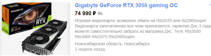 Поскольку спрос есть, цены на видеокарты выросли и на вторичном рынке. Например, GeForce RTX 3050 купить дешевле 75 тысяч рублей просто невозможно. Поскольку данная видеокарта и без того стоила дорого, то в текущих обстоятельствах она кажется неоправданно дорогой. И всё же, многие геймеры сидят без видеокарт и долго надеялись на скидки. Сегодня уже очевидно, что в ближайшие месяцы исправить положение не удастся, поэтому для некоторых даже двойная переплата лучше полного отсутствия. Тем более, что даже наши читатели часто пишут, что ждали уже больше полутора лет. Сколько можно!