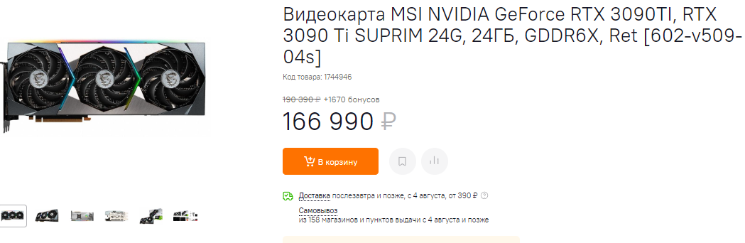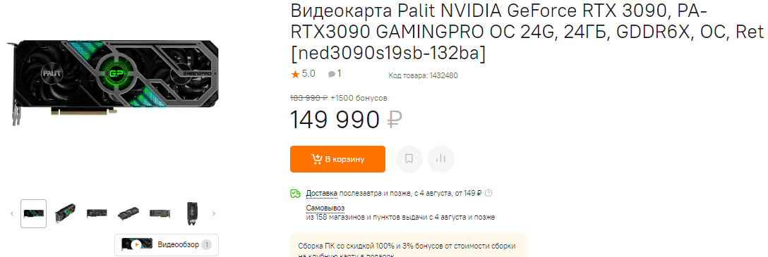 Бывает и так, что среди энтузиастов с бездонным кошельком встречаются разумные люди, которые знают цену деньгам. Именно для них и создана GeForce RTX 3080 Ti. Мы постоянно напоминаем, что движение вниз по линейке графических чипов – это всегда компромисс, но бывает и так, что вы почти ничего не теряете. GeForce RTX 3080 Ti получила в два раза меньше видеопамяти, что негативно сказывается на решении сложных рабочих задач. Именно поэтому для рендеринга профессионалы предпочитают брать GeForce RTX 3090, а вот геймерам всё это не так важно. Да, с GeForce RTX 3080 Ti вы получите на 7-10% меньше чистой производительности, но когда речь идёт о сотне кадров в секунду, то такие мелочи никого не волнуют. Ну и учитывайте, что на момент выхода в продажу в РФ этот графический чип стоил от 117 тысяч рубликов. Такова рекомендованная цена, ну а сегодня она на 10 000 рублей ниже.