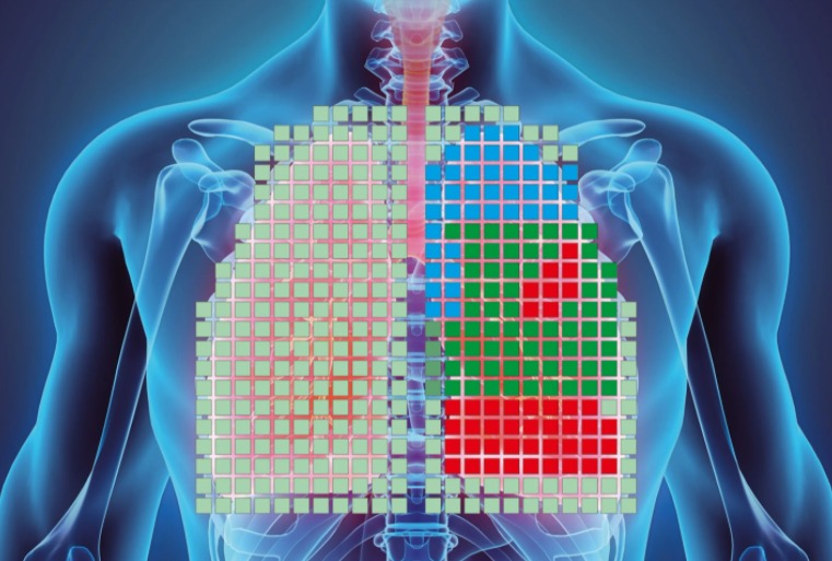 На данном изображении, полученном с помощью Pneumo.Vest, красные квадраты обозначают участки легких с дыхательной недостаточностью. Fraunhofer IKTS