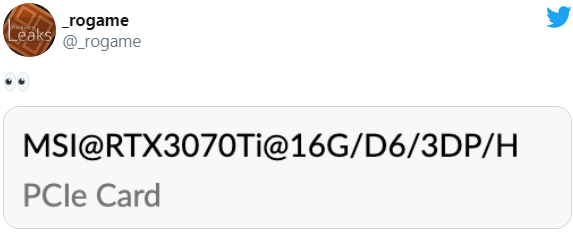 Но сегодня известный инсайдер _rogamer опубликовал информацию о наличие у компании MSI видеокарты RTX 3070 Ti с 16 Гб памяти GDDR6. Таким образом, вероятность существования указанного графического адаптера весьма высока.
