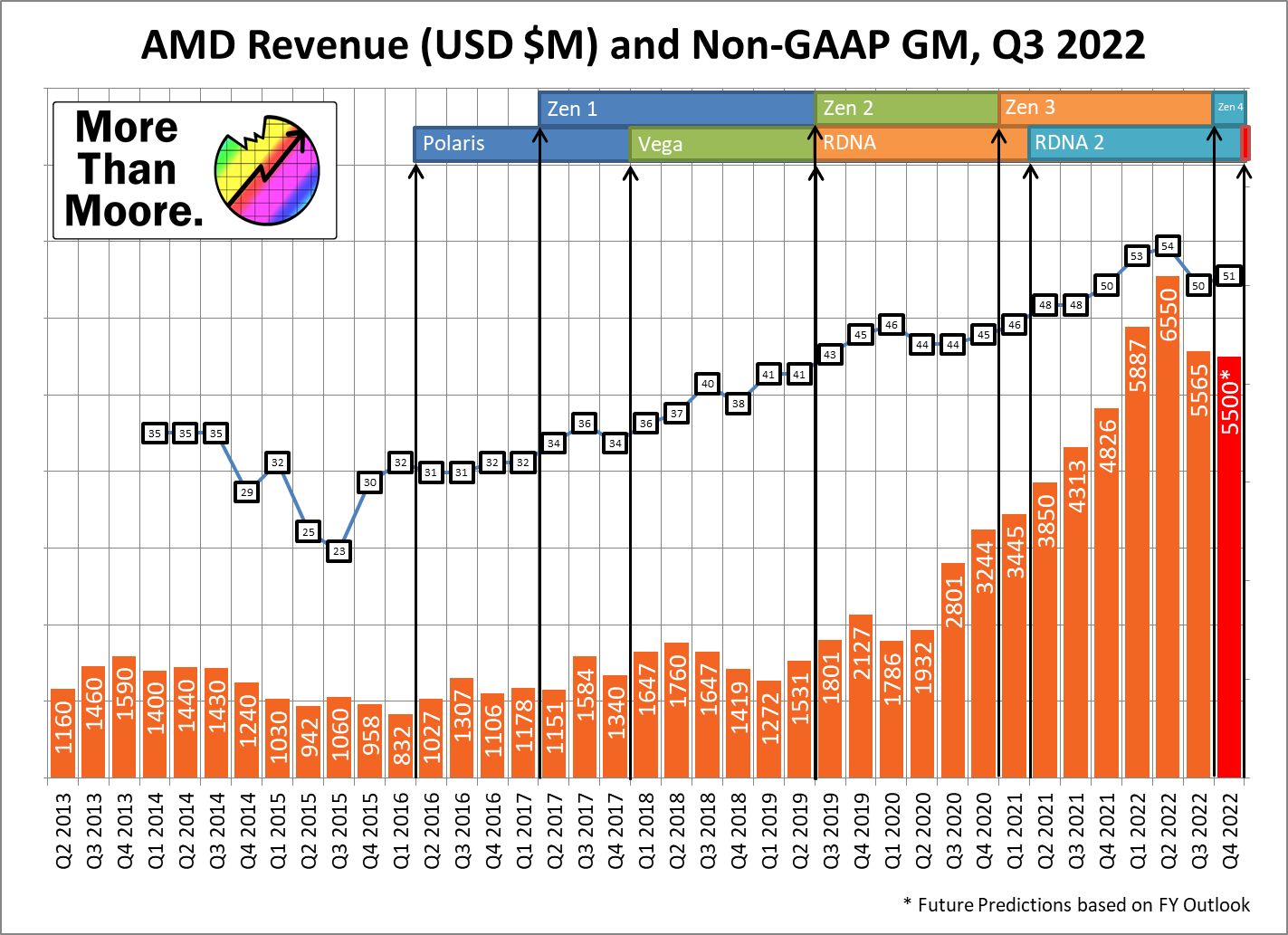 В третьем квартале этого года AMD смогла в годовом сравнении увеличить игровую выручку лишь на 14% до $1,4 млрд, назвав данный период довольно удачным для сегмента игровых консолей в силу сезонного повышения спроса — поставленные компанией изделия данного типа найдут применение в товарных экземплярах консолей лишь в этом квартале, поэтому на выручке AMD данная тенденция отразилась заблаговременно. Продажи видеокарт, как можно догадаться, в третьем квартале уже снижались, причём AMD подтвердила, что выражалось это и в сокращении количества реализованных видеокарт.
