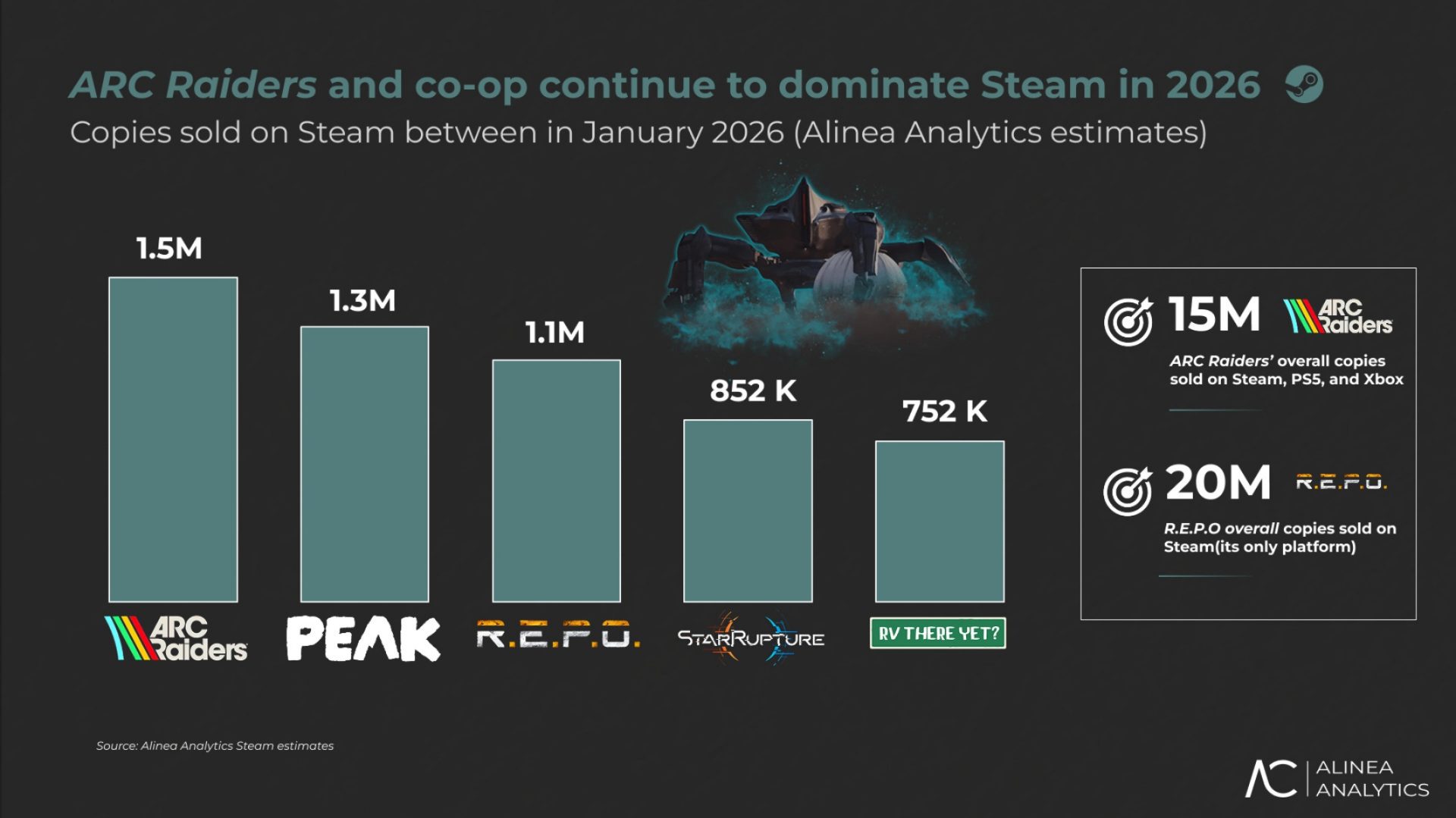 Популярности игры не помешала даже её критика за использование при разработке генеративного искусственного интеллекта. Теперь остаётся наблюдать за тем, как ARC Raiders будет поддерживать подобный уровень успеха и вовлечённости геймеров. Год только начинается, и крупных релизов среди видеоигр запланировано немало, а также могут выстрелить неожиданные пока игры. В любом случае, поскольку к настоящему моменту число одновременно играющих в ARC Raiders на платформе Steam всего один раз было ниже отметки в 100 тысяч человек, у разработчиков есть все основания для оптимизма.