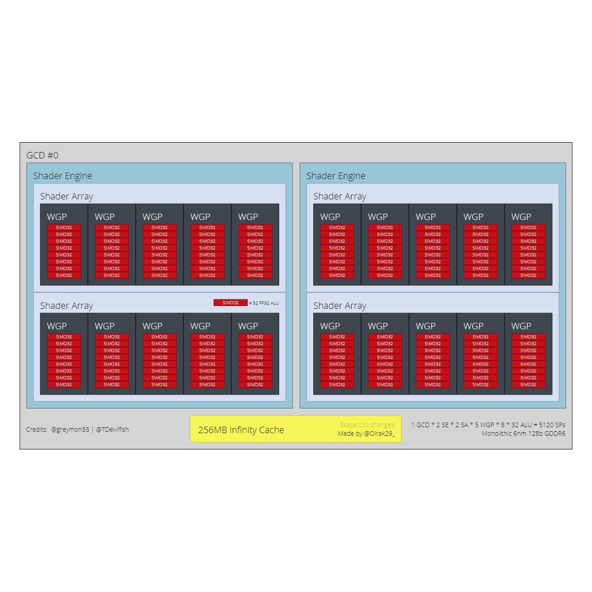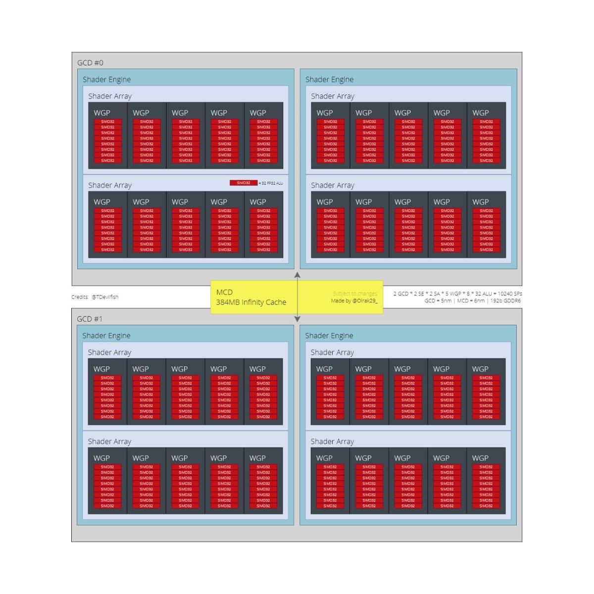 В следующем году компания AMD, как ожидается, намерена представить очередное поколение своих графических адаптеров, в основу которых ляжет архитектура RDNA 3: несмотря на то, что официальной информации по этому поводу не так уж и много, инсайдеры восполняют имеющиеся пробелы, делясь с компьютерной общественностью разного рода «утечками» и слухами — именно на их основании энтузиаст под ником Olrak создал блок-схемы, наглядно демонстрирующие структуру будущих чипов, пишет ресурс VideoCardz.