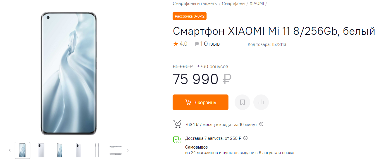 Сейчас Xiaomi Mi 11 возвращается в продажу. В магазине «Ситилинк» модель можно купить за скидкой 10 000 рублей. Если рекомендованная стоимость смартфона составила 85 990 рублей, то сейчас флагмана можно купить за 75 990 рублей.