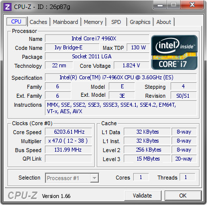 Чем же готовы порадовать нас мастера криогенного разгона сейчас, на следующее утро после анонса процессоров Ivy Bridge-E. Если обратиться к статистике HWBot, то для флагманского Core i7-4960X единственным зарегистрированным рекордом тактовой частоты является отметка 6204 МГц, пройденная при одном активном ядре. При напряжении 1.8 В и частоте 5.8 ГГц данный экземпляр процессора сохраняет стабильность в тестах с использованием трёхмерной графики.